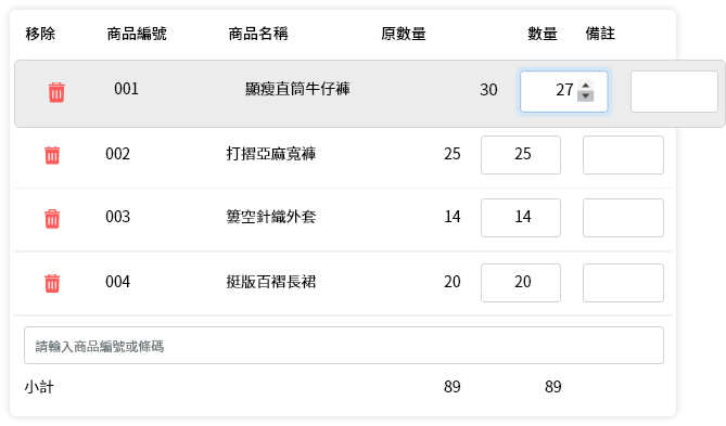 庫存管理 存貨不足,系統自動通知。庫存最佳化,降低缺貨風險。 功能 Functions 跨「時空」管理庫存 結帳自動扣 售出時自動扣庫存,退貨時自動將存貨加回 庫存警示通知 當現有庫存低於安全庫存時,自動跳出系統訊息 即時庫存一目了然 使用手機也能進入後台網頁瀏覽當前庫存量 遠端也能一鍵停賣 可於線上線下同步停賣售完之商品 追蹤成本,精準規劃 平均成本自動算 系統自動根據進貨單計算目前庫存的平均成本 多種進銷存報表 設置搜尋條件即可瀏覽或匯出報表採購明細表、盤點盈虧表、商品異動表等 掌握資源,成功關鍵 •可手動調撥、調整各店或各倉的存貨數量 •降低庫存積壓或缺貨的風險 •根據報表制定補貨或採購決策 •降低倉儲成本,提高資金使用效率