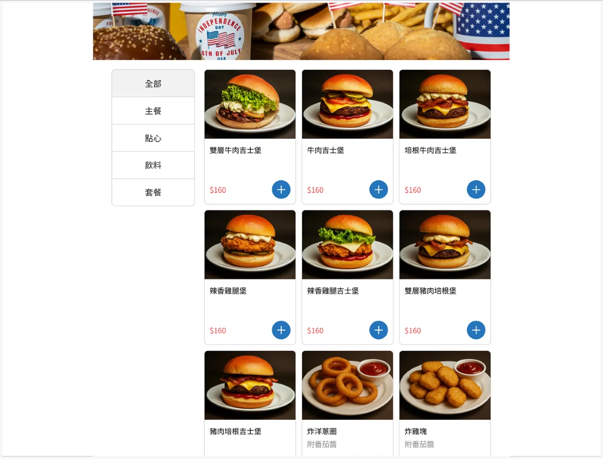新增菜單類別及其下品項,供顧客選擇餐點及數量。