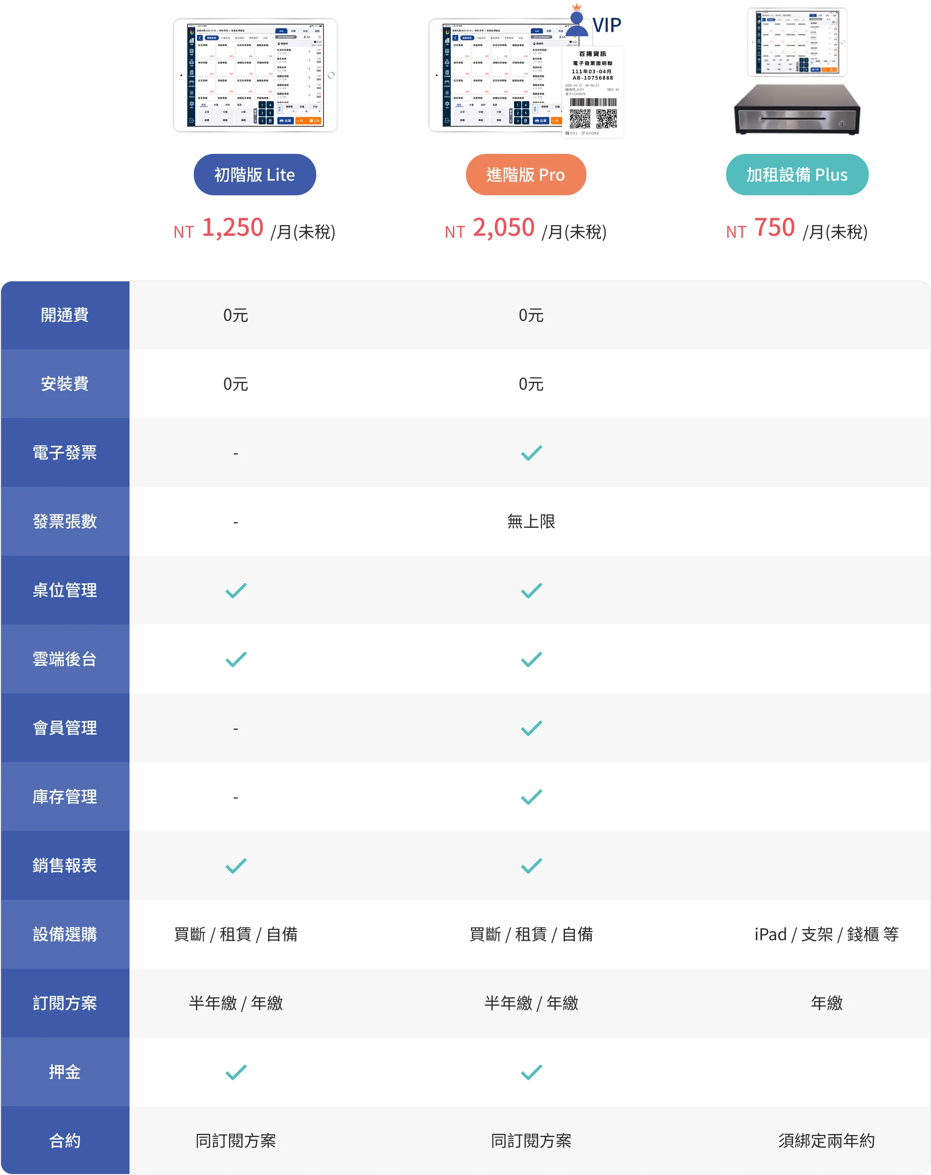 租賃分為兩種版本(備註: PLUS是加租的硬體設備)