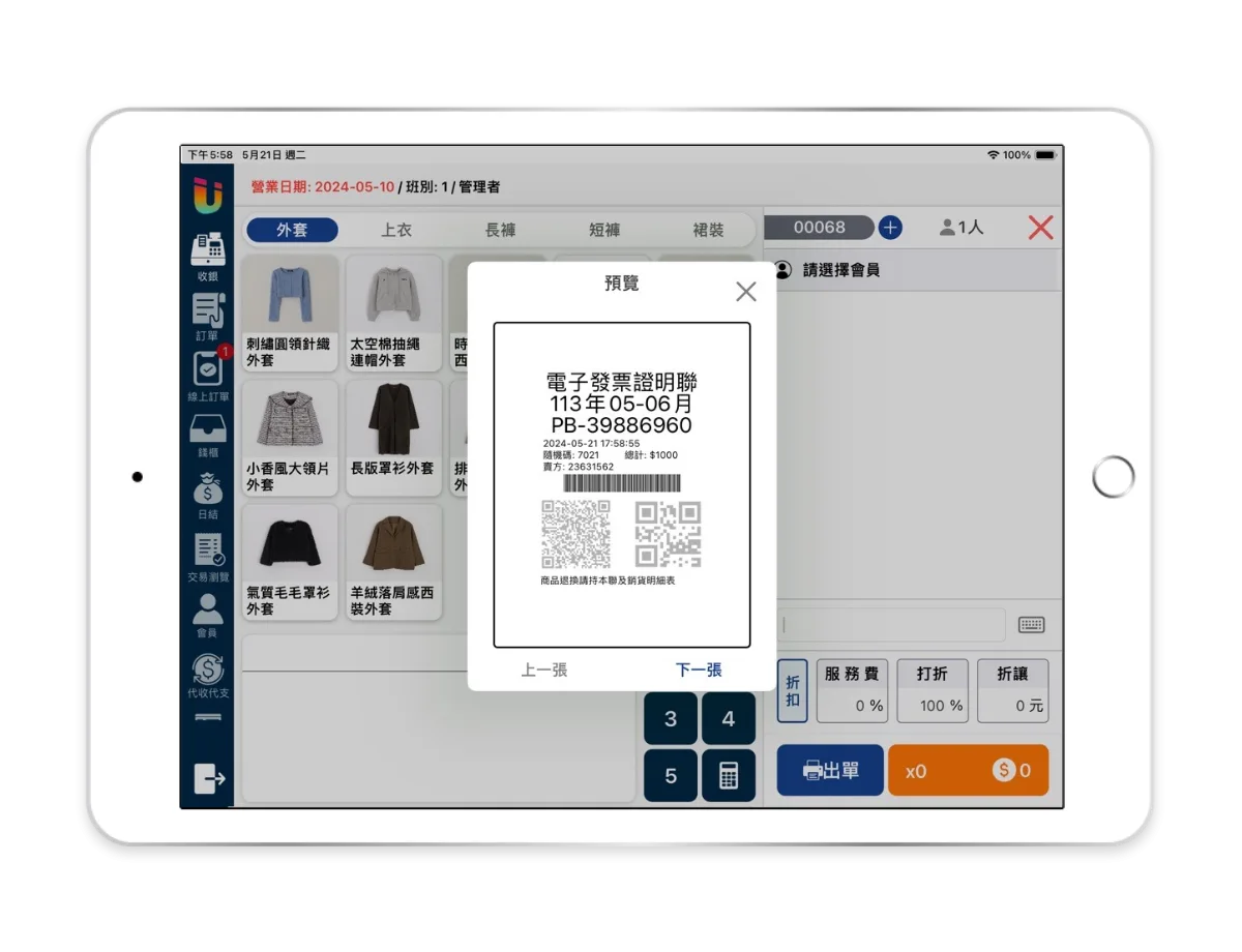 使用 iPad POS 機身鏡頭,直接將發票存入顧客載具,縮短等待發票出單的時間,也減少紙張資源的消耗。